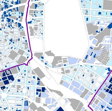 El tercer anillo se corresponde con los barrios de la Almendra Central, a los que se suman otros de los distritos de Usera, Carabanchel y Latina.